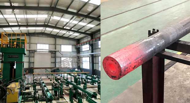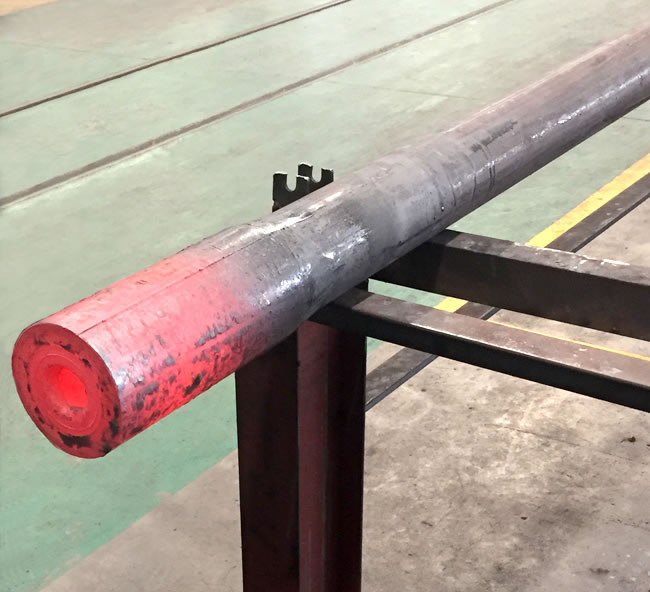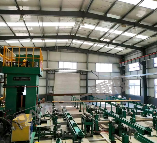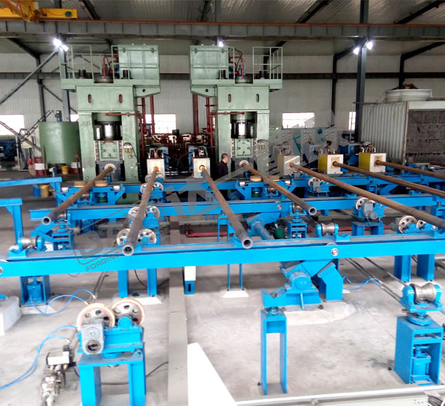 管端加厚机是我公司针对石油钻杆、油管的加厚工艺研发的新型特种设备,管端加厚的目的主要是为了保证钢管在管端车加工截面处的强度,钢管加厚类型有外加厚、内加厚、内外加厚三种工艺。加厚机组有加厚机、辅机及加热系统等组成,即对钢管进行横向运输、加热及端部加厚。